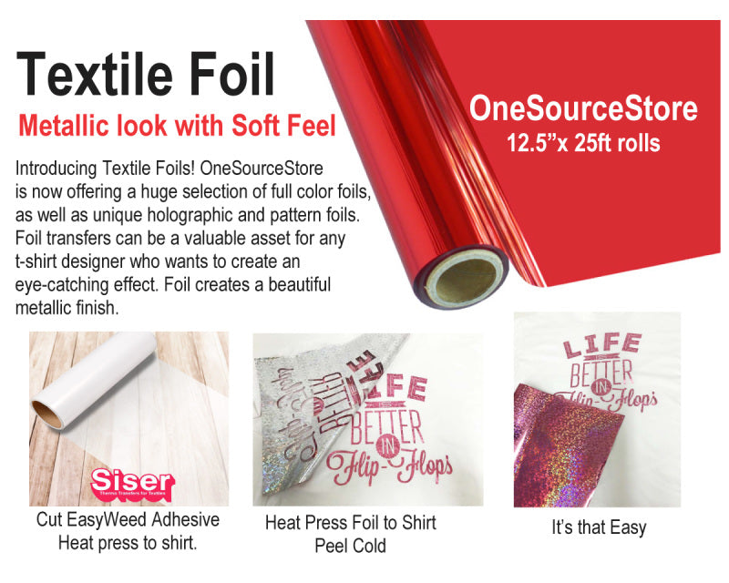Metallic Foil Transfer is a special eye-catching graphic effect for T-shirts. It produces a shiny “metal-appearing” surface on various types of fabrics by using a heat press or home iron.
